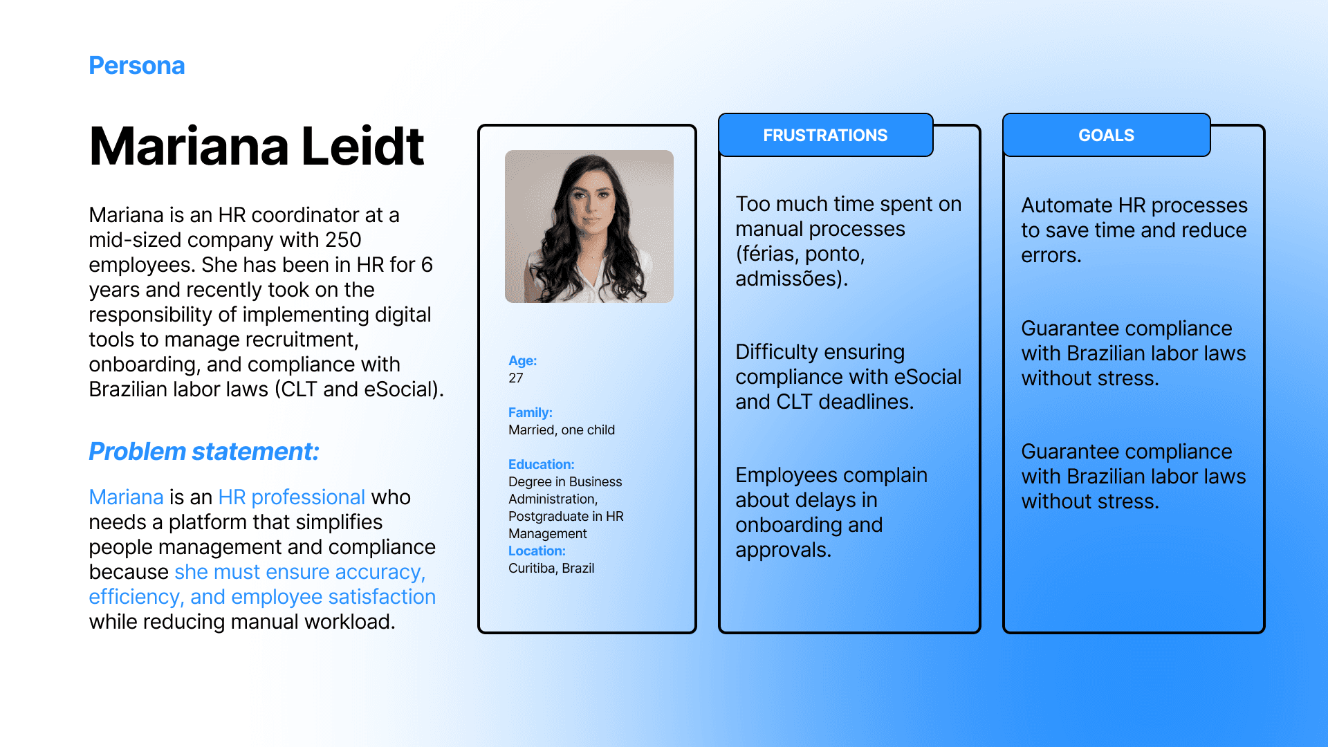 As a UX/UI Designer, I worked closely with product managers, developers, and business stakeholders to deeply understand HR processes, Brazilian labor rules, and real user pain points. Through user research, workflow mapping, and continuous validation, I translated complex operational logic into clear interfaces, well-structured information architecture, and consistent interaction patterns.